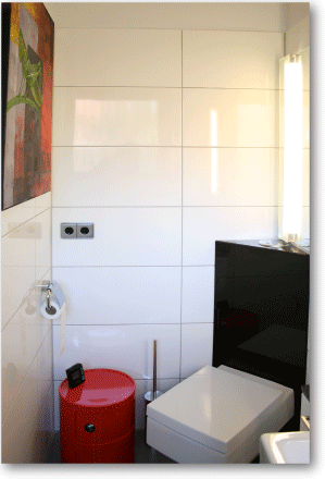 Hierbei sind der Fantasie keine Grenzen gesetzt. Auch extravagante Ideen lassen sich realisieren. Durch eine geschickt gewählte Zusammenstellung von Farben, Formen und Material entsteht ein harmonisches Ganzes, ein Bad mit Wellness-Charakter.